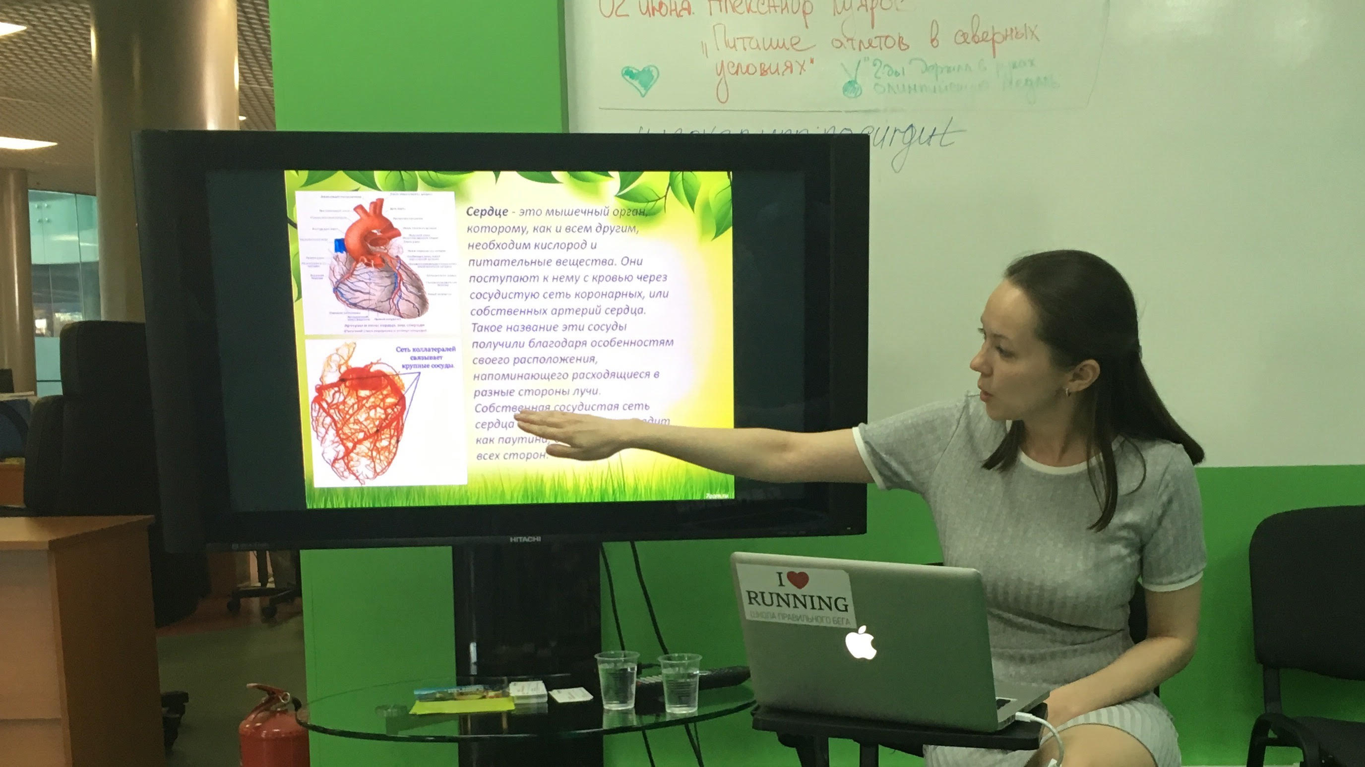 Перед слушателями выступили практикующие специалисты окружного кардиологического диспансера. Врачи рассказали, как выбрать правильную технику бега и как безопасно заниматься этим видом спорта. Отметили, что столь естественное для человека занятие может привести к серьезным последствиям, вплоть до летального исхода, если изначально не подготовить свой организм. Для этого нужно пройти медицинское обследование при планировании каких-либо физических нагрузок. Для понимания структуры и работы своего организма в начале своей лекции врачи повторили с бегунами строение сердца.