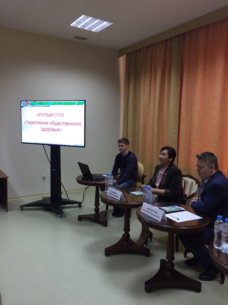 Мероприятие началось с работы круглых столов на актуальные темы, среди которых укрепление общественного здоровья. В рамках встречи главный врач БУ «Центр медицинской профилактики» Алексей Молостов представил участникам проект «Формирование системы мотивации граждан к здоровому образу жизни, включая здоровое питание и отказ от вредных привычек».