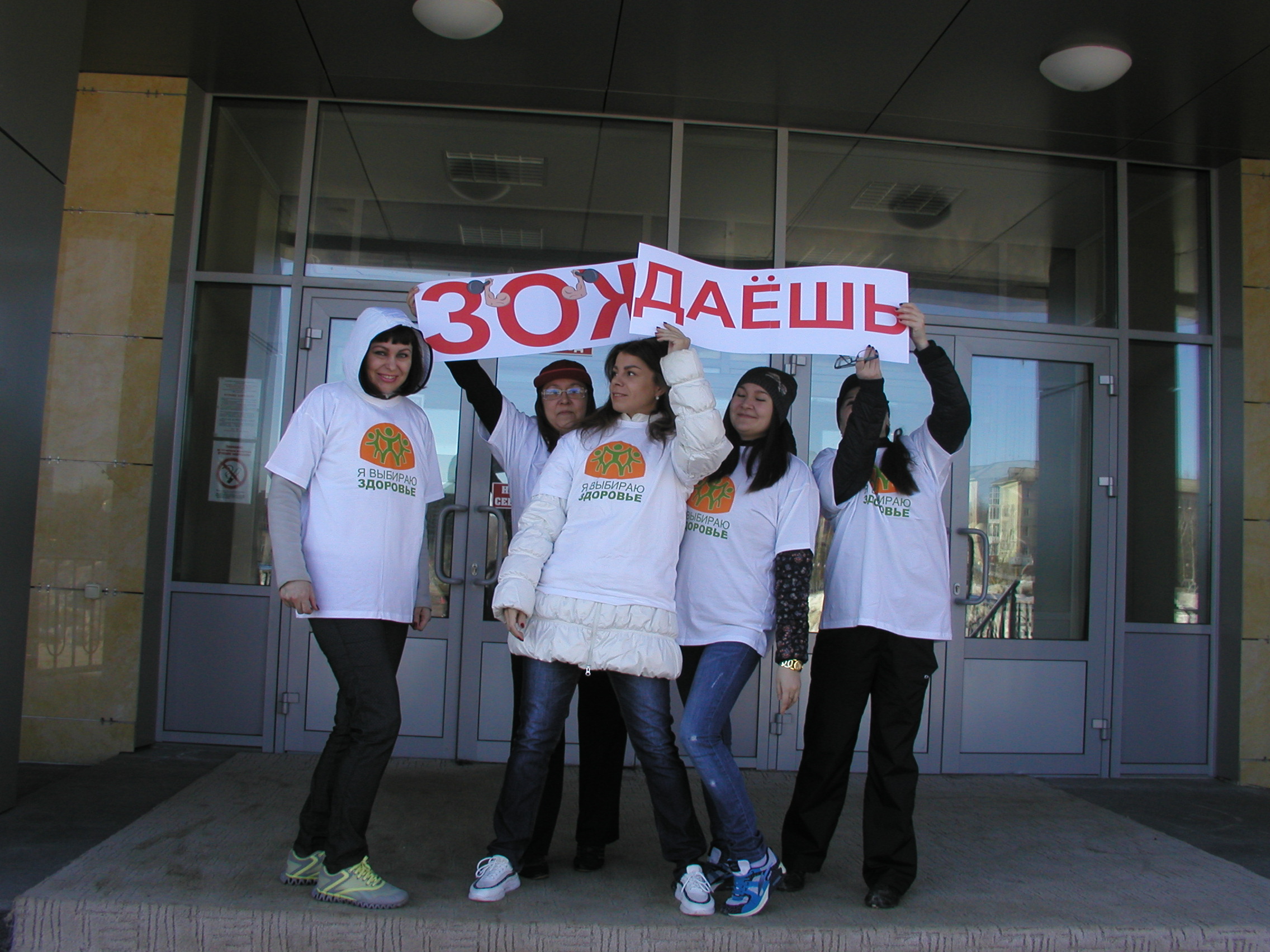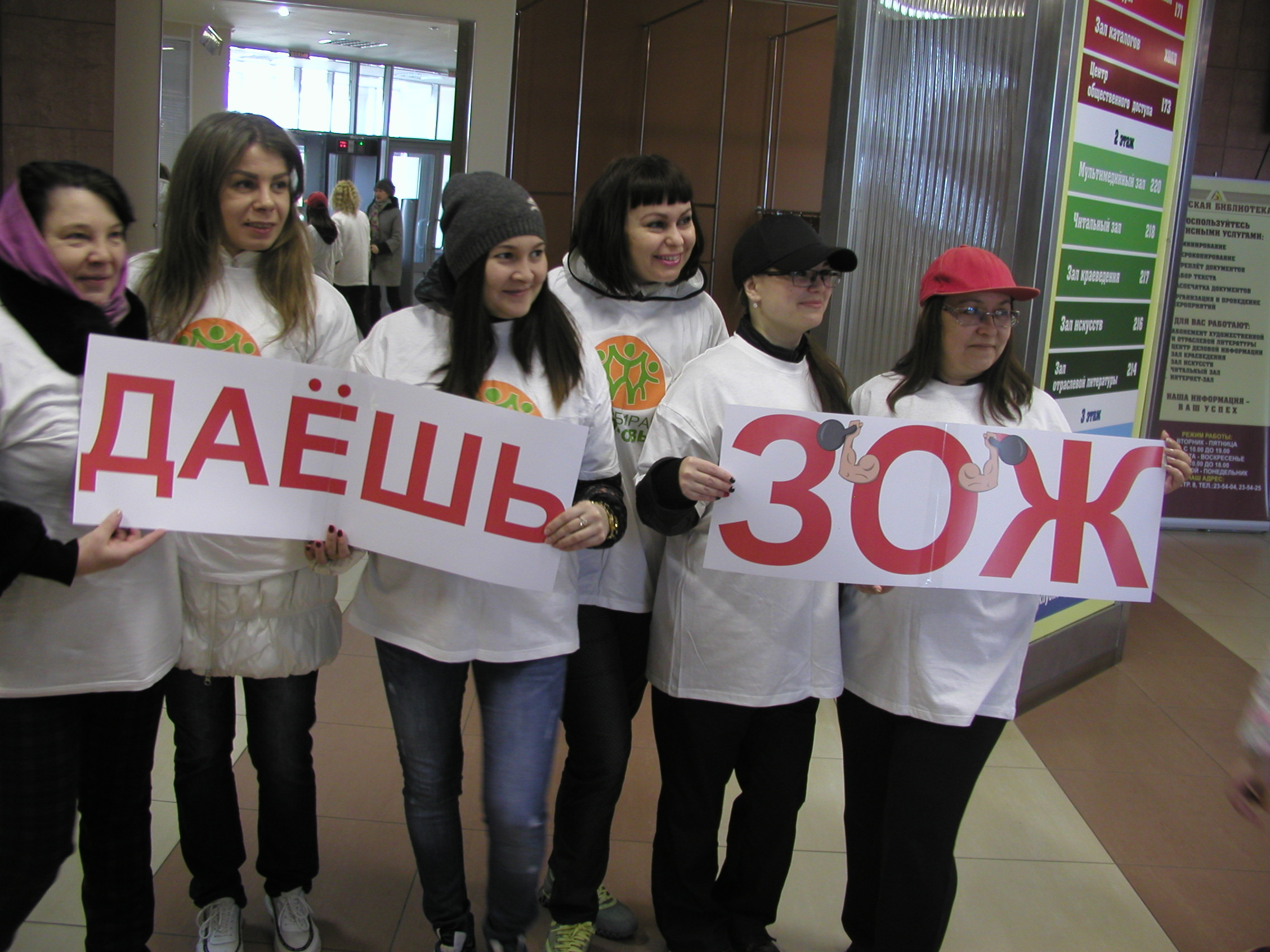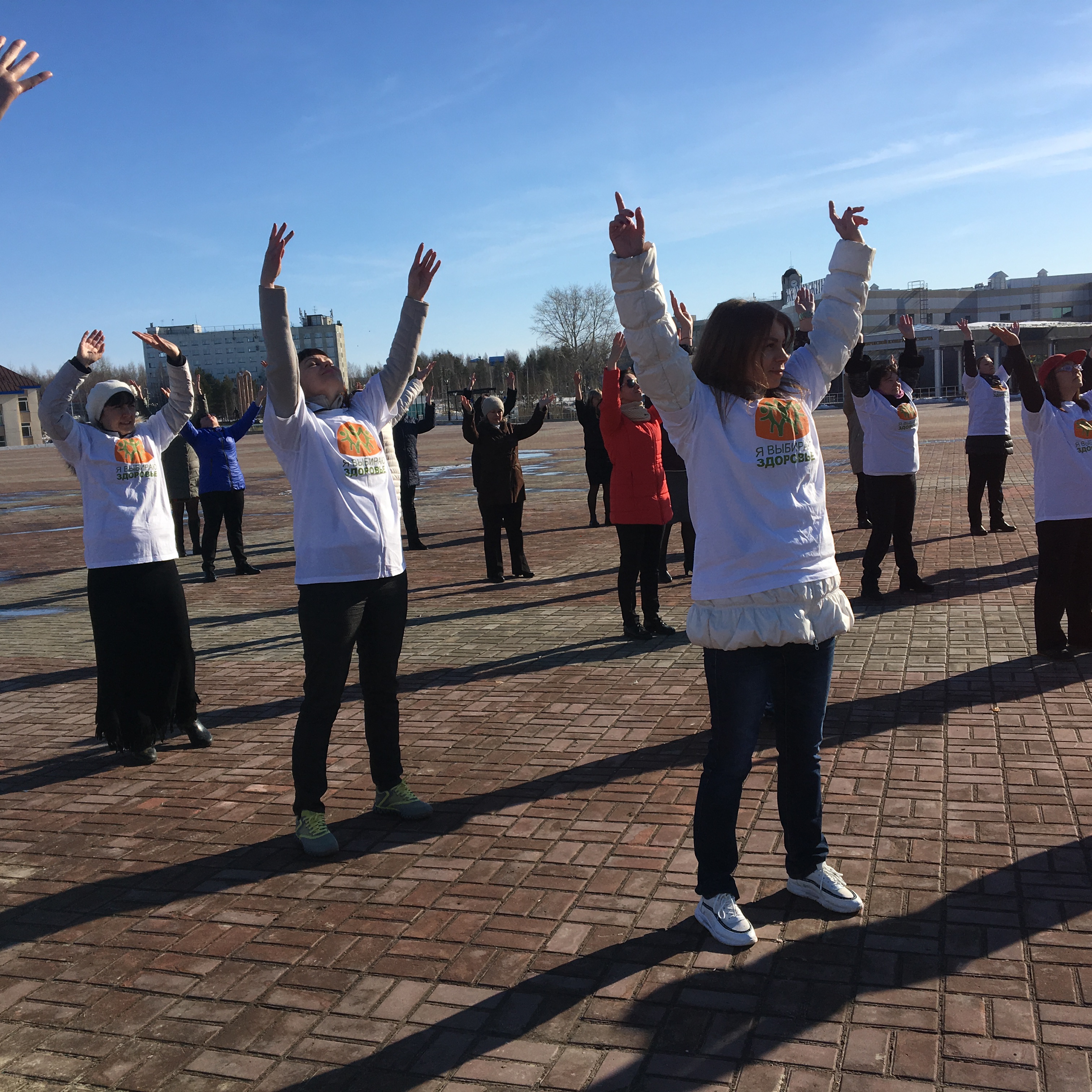 Сотрудники культурно-досугового комплекса и городской библиотеки при информационной поддержке центра медицинской профилактики организовали и провели зарядку «Даёшь ЗОЖ!».