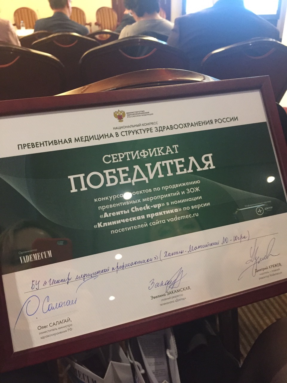 В рамках национального конгресса проходил конкурс лучших проектов по продвижению превентивных мероприятий и ЗОЖ «АГЕНТЫ CHECK-UP». На первом этапе конкурса организаторы отобрали 30 лауреатов, распределив их по трем номинациям. Система здравоохранения Югры была представлена тремя проектами: «Здоровый класс», «Здоровая семья - здоровая Югра», «Берегите женщин!» (профилактика онкологических заболеваний). По итогам онлайн голосования автономный округ победил в номинации «Клиническая практика» с проектом «Здоровый класс».
