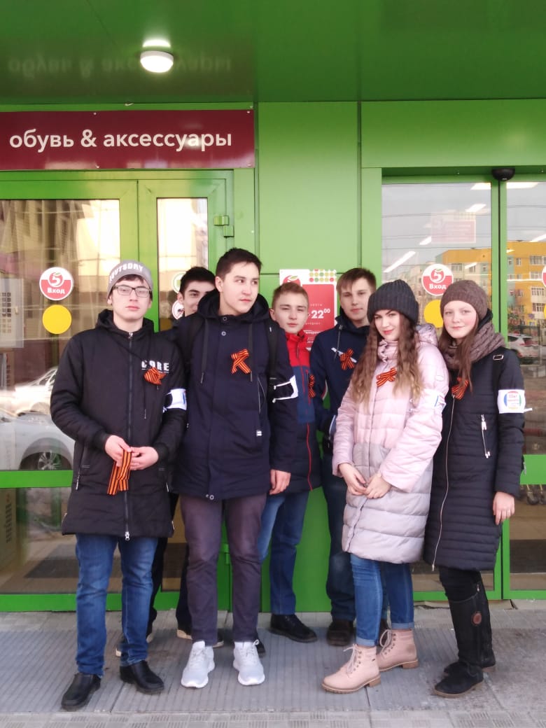 В знак памяти героям Великой Отечественной войны волонтеры призывали всех горожан чтить георгиевскую ленту, как символ доблести и мужества советских воинов.