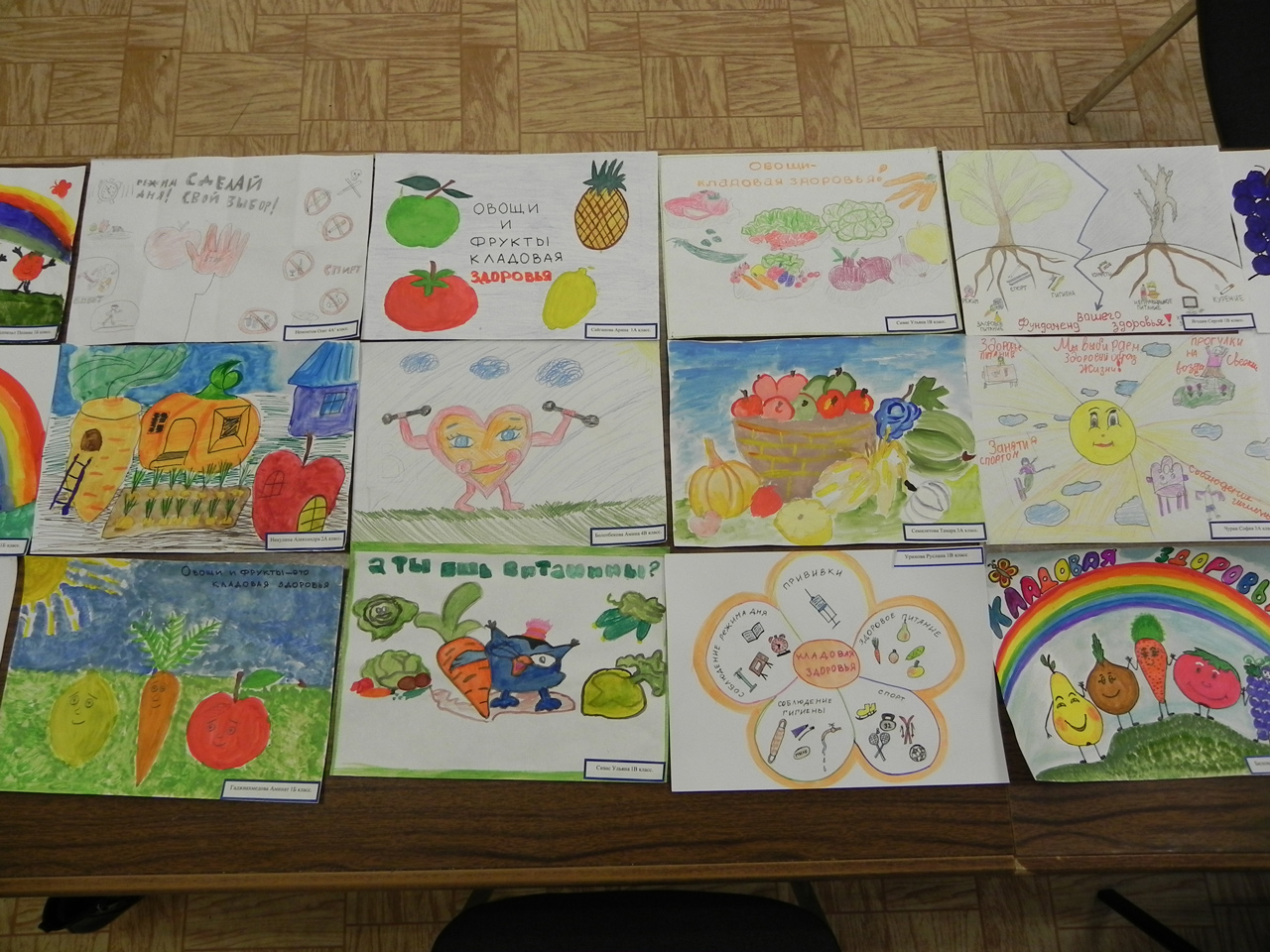 Конкурс рисунков проводился среди учеников начальных классов Нижневартовской школы для обучающихся с ограниченными возможностями здоровья. В своих рисунках дети изобразили, как правильно питаться, заниматься спортом и не допускать вредных привычек.