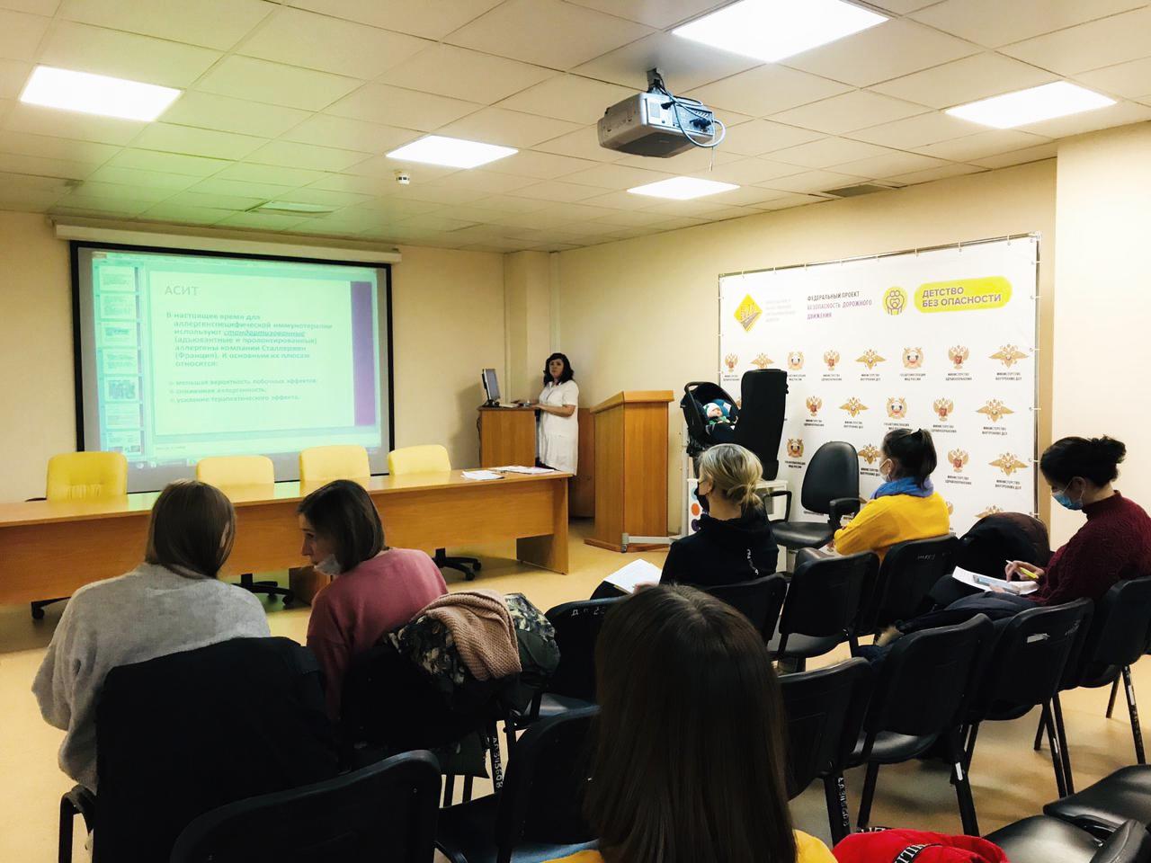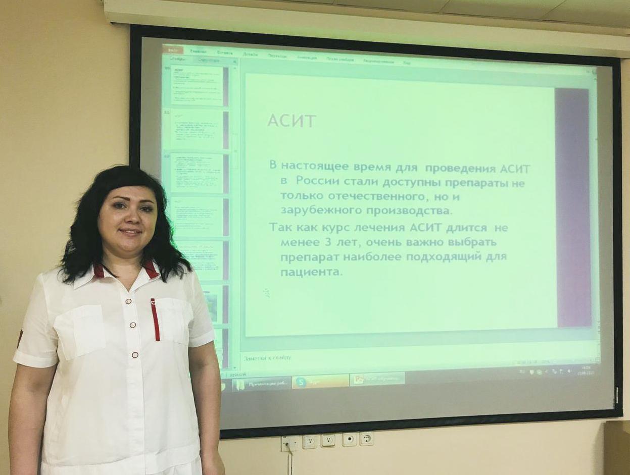 На лекции родители смогли подробнее узнать об этих заболеваниях, симптомах их проявления, осложнениях. Наглядно в презентации демонстрировалась подробная информация о новых методиках лечения поллиноза. Родители смогли задать вопросы по этому виду терапии, смогли получить ответы специалиста, а также получили подробные инструкции в брошюрах. Слушатели узнали об аллерген-специфической иммунотерапии (АслИТ). Она может вводиться двумя способами: посредством подкожных инъекций или сублингвальным (подъязычным) способом в виде капель или таблеток. Сублингвальная иммунотерапия позволяет свести к минимуму все неприятные ощущения от процедуры, что играет очень большую роль не только для детей, но и для взрослых.