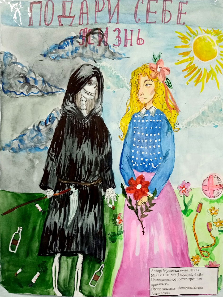 – номинация «Я против вредных привычек» – Мухамедьянова Лейла, 4 «В» класс, МБОУ СОШ № 9;