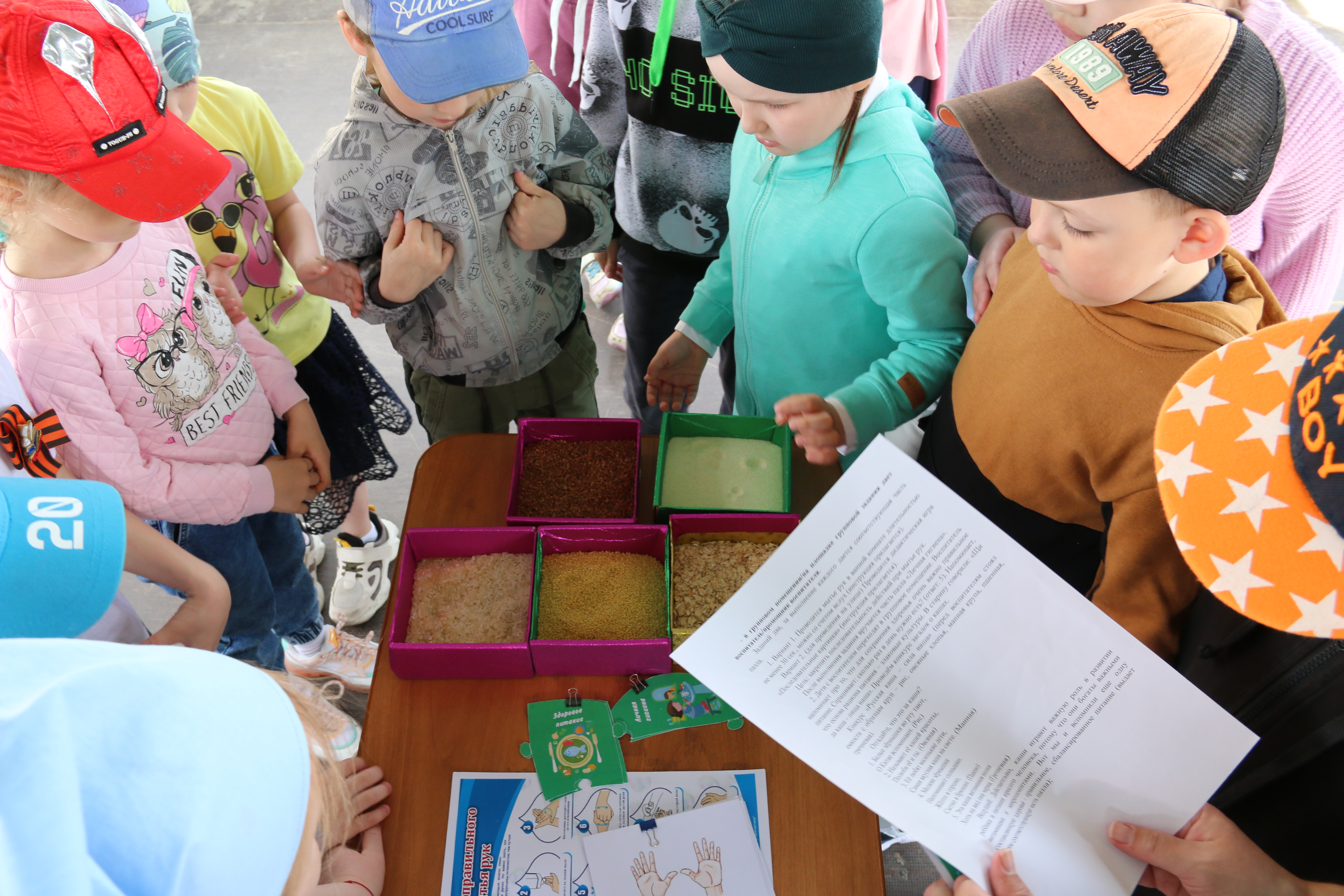 Три команды воспитанников детского сада занялись аэробикой на свежем воздухе, вспомнили, как правильно мыть руки и почему важно соблюдать режим дня, проявили эрудицию, отгадывая загадки о полезных кашах. И даже проявили свои артистические таланты.