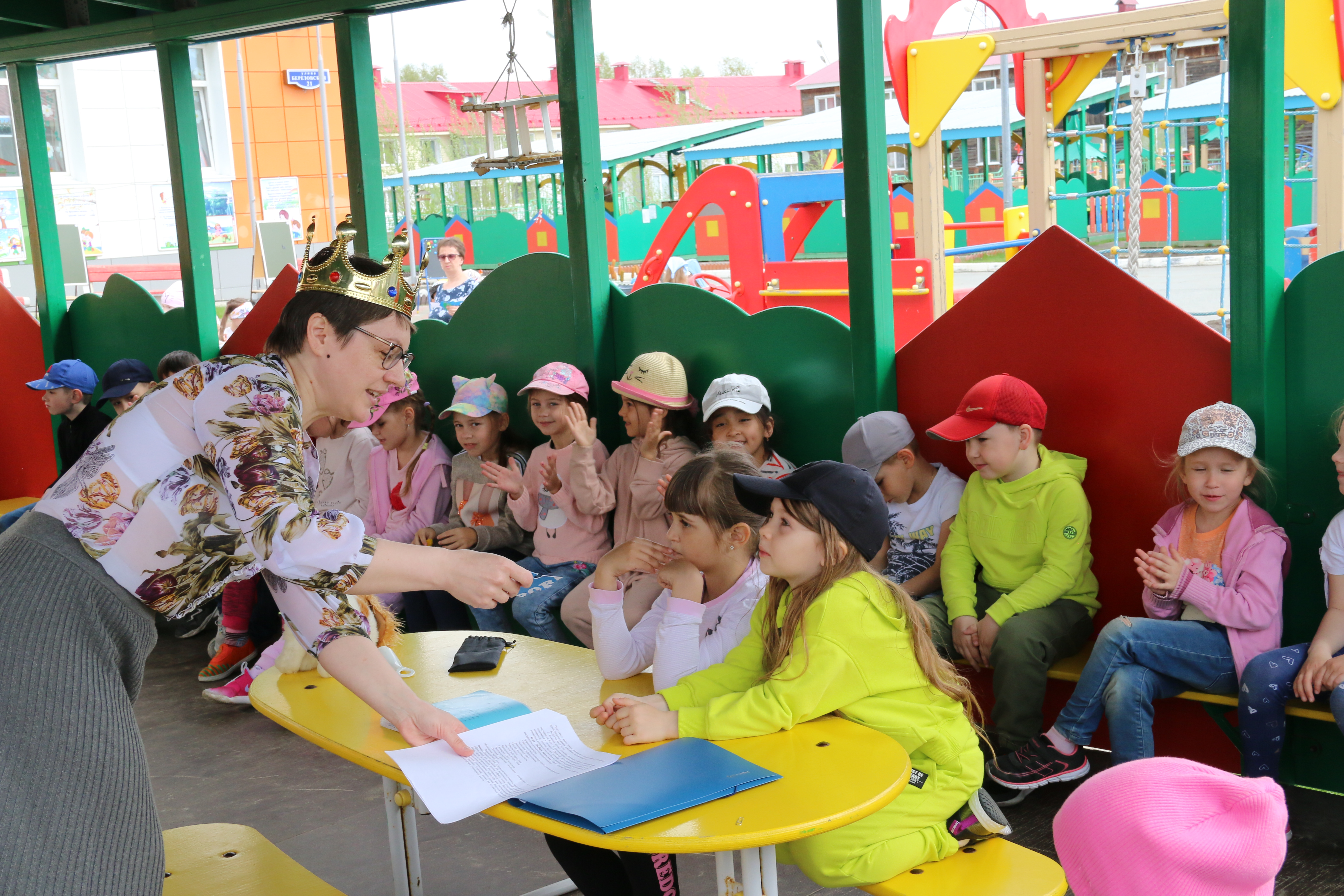 Королева Страны Здоровья навестила сегодня детский сад №22 «Планета детства» в Ханты-Мансийске. Она рассказала ребятам, как важно заботиться о своем организме, а помогли ей в этом воспитатели, педагог-психолог и инструктор по физическому воспитанию.