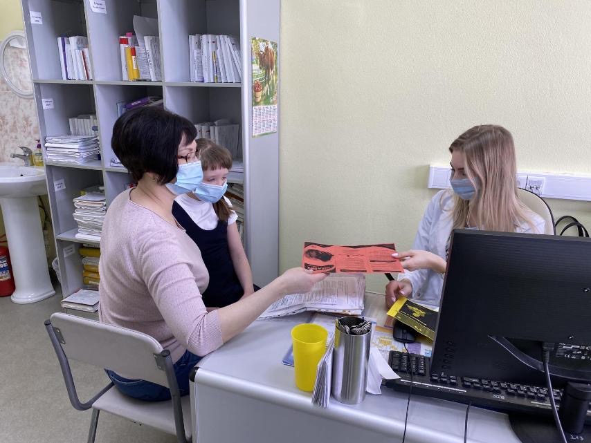 Среди посетителей детского лечебного учреждения специалисты провели информационно-коммуникационную кампания по вопросам ВИЧ-инфекций #ЗНАЮПОМНЮЖИВУ, раздали памятки и символ в честь дня памяти умерших от ВИЧ/СПИДа – красную ленту, которая символизирует поддержку, сострадание и надежду на будущее без СПИДа.