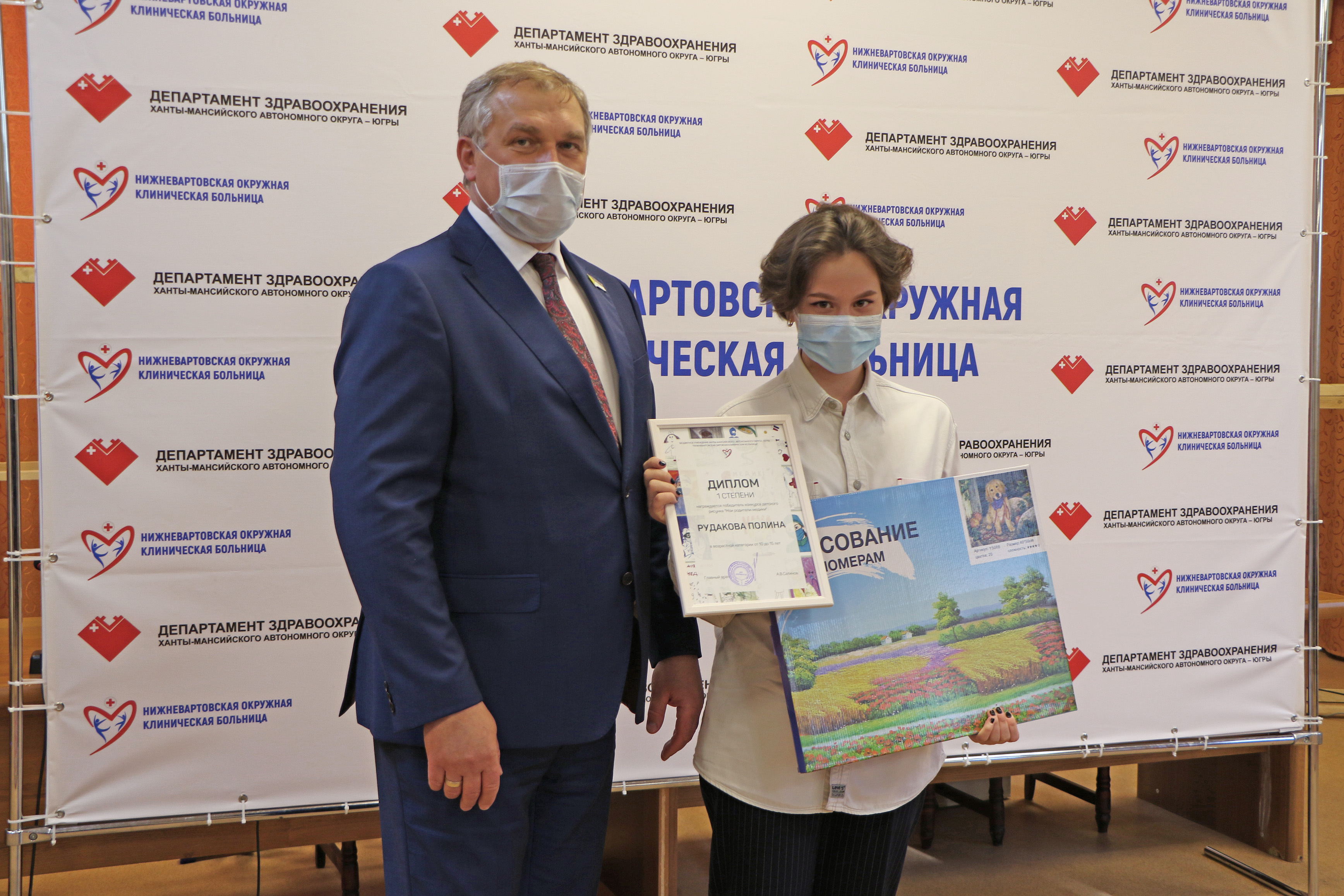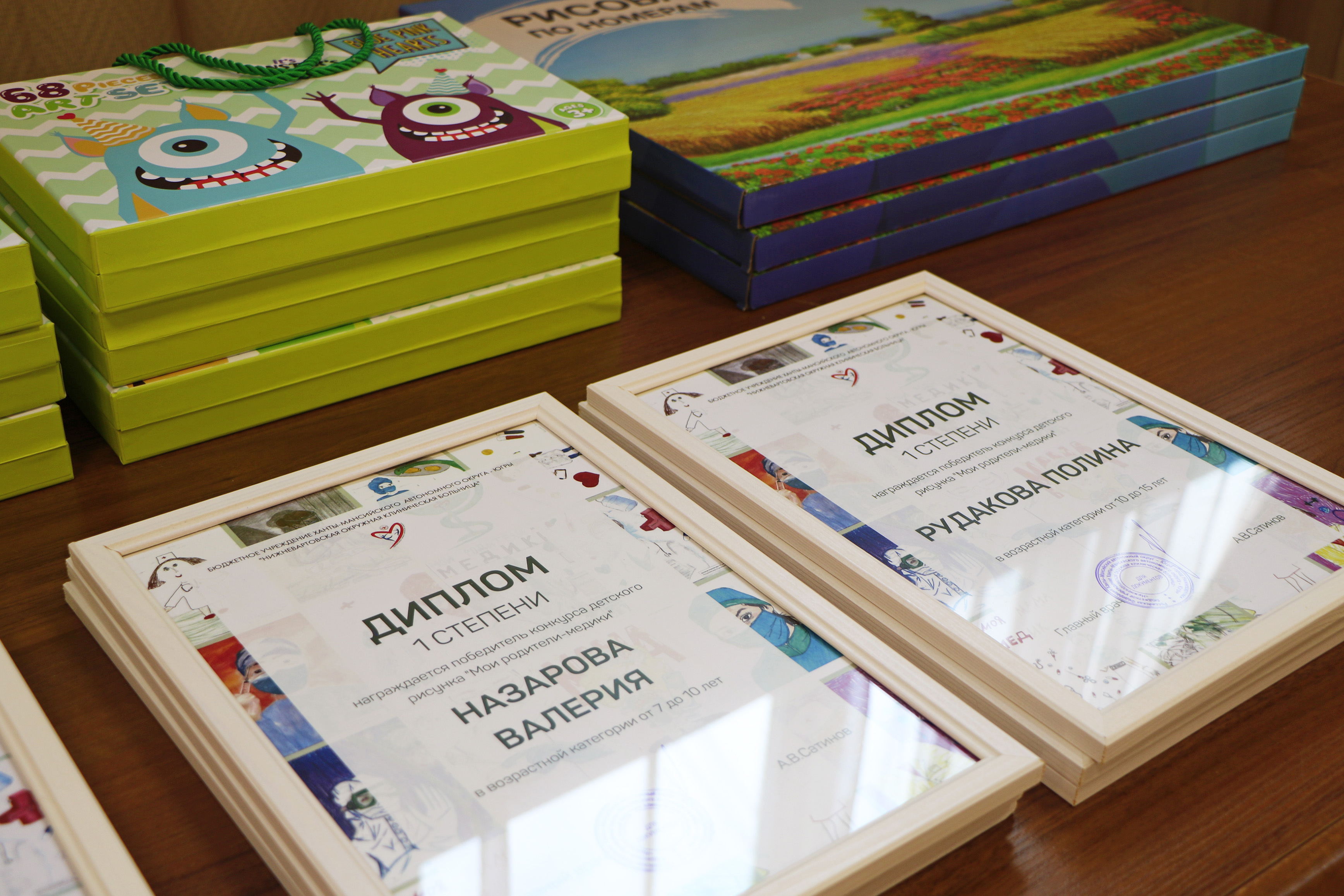 Выставку юных художников организовали в приемных отделения больницы. Победители конкурса были награждены дипломами и наборами для рисования, а участники получили сладкие подарки.