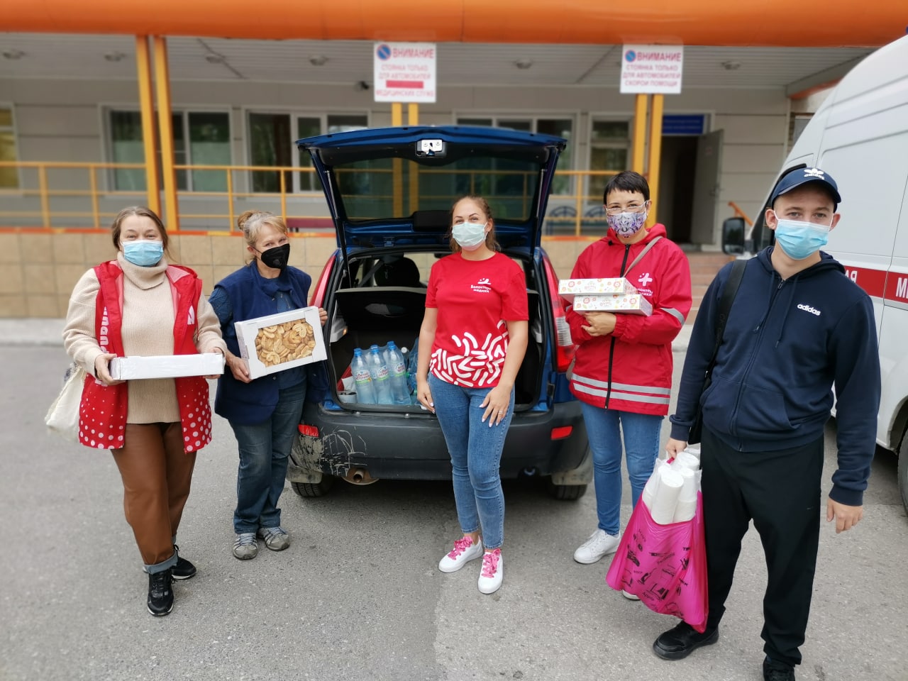 Ребята в группе #ВолонтёрыМедики быстро среагировали на просьбу передать питьевую воду и одноразовые стаканчики, и уже на следующий день команда добровольцев отправилась за гостинцами.