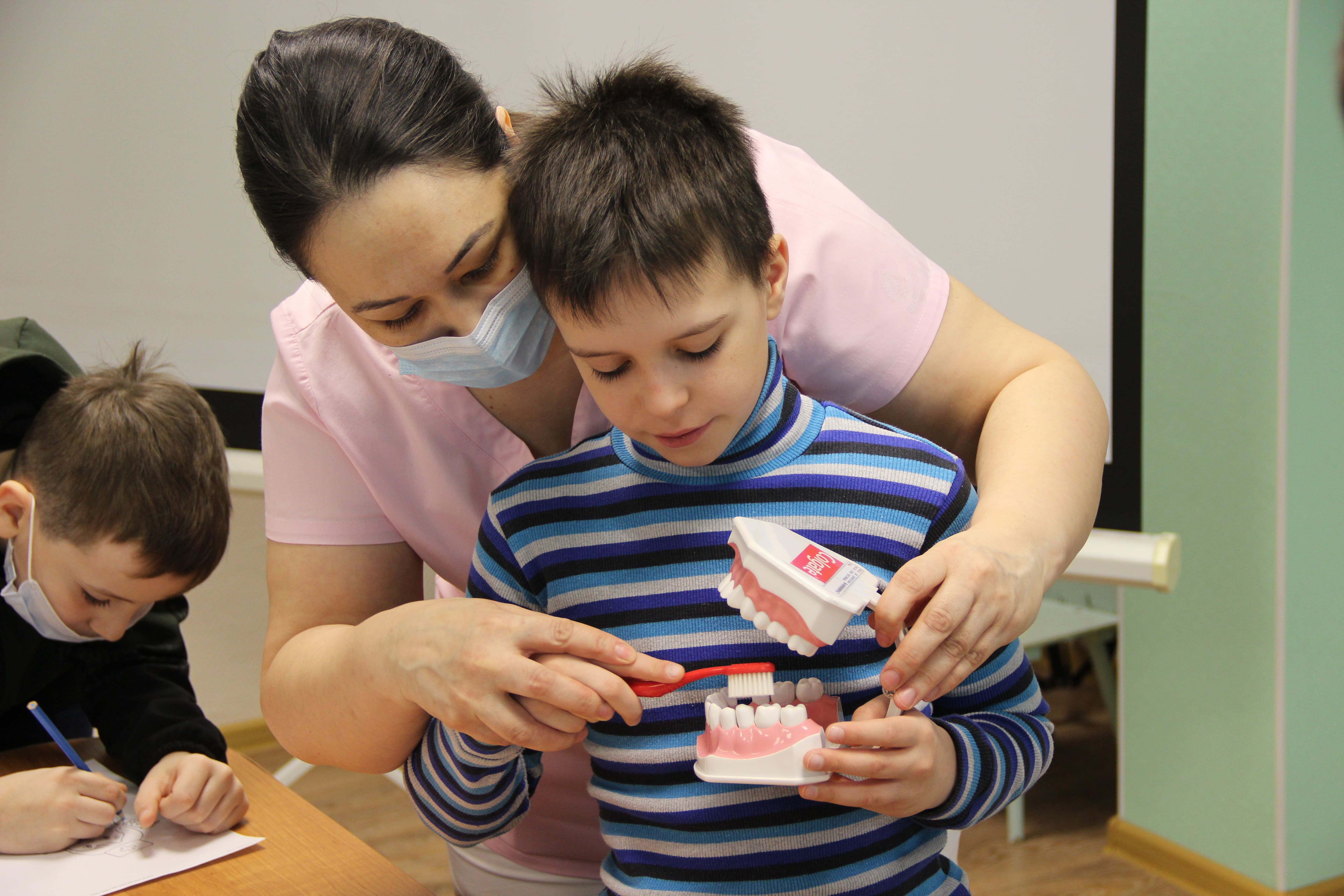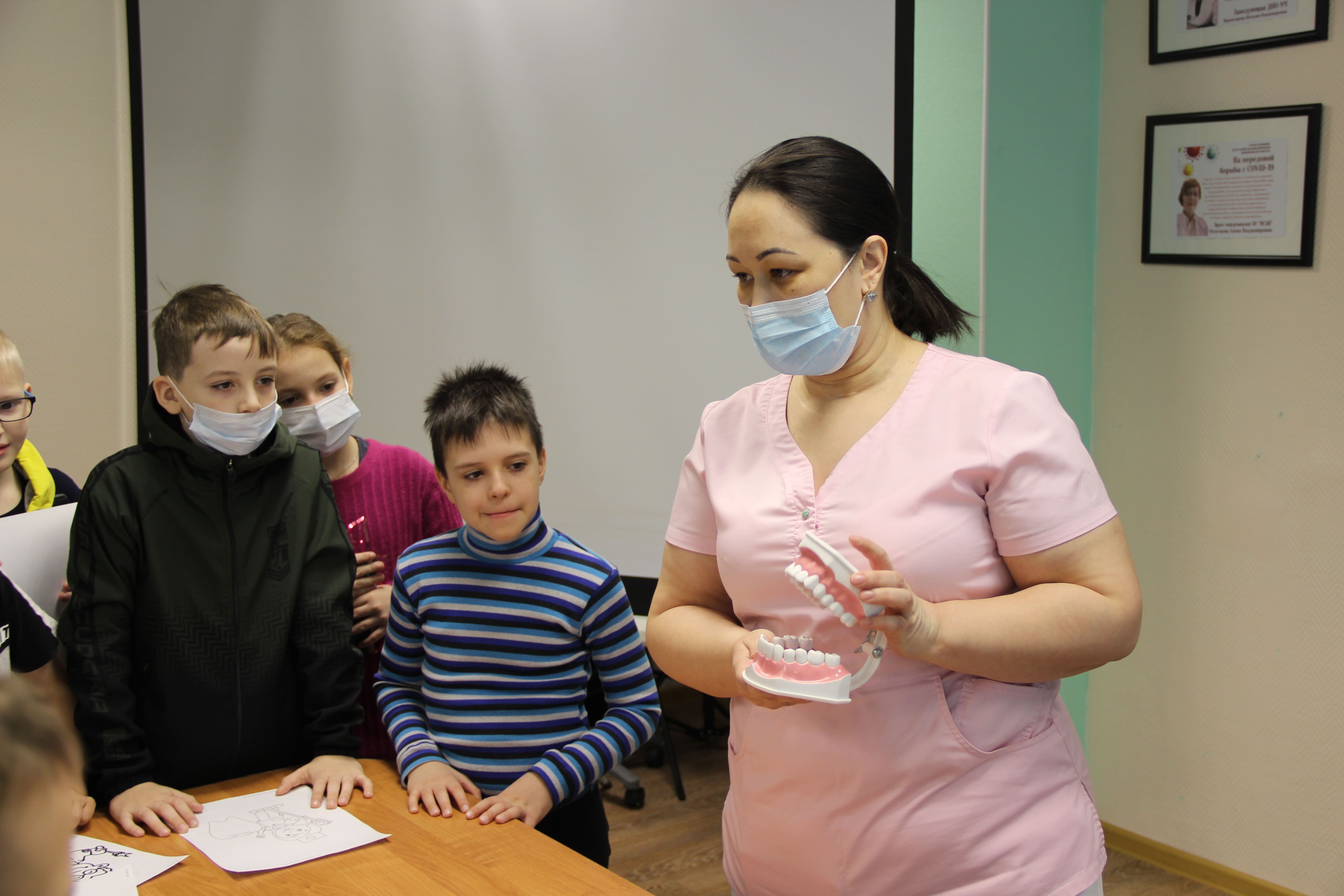 Для ребят был организован творческий конкурс рисунков, викторина «Вопрос-ответ» на стоматологическую тематику, в том числе, по основным правилам профилактики стоматологических заболеваний, проведен мастер-класс, в котором гигиенист познакомила ребят с основными правилами чистки зубов.