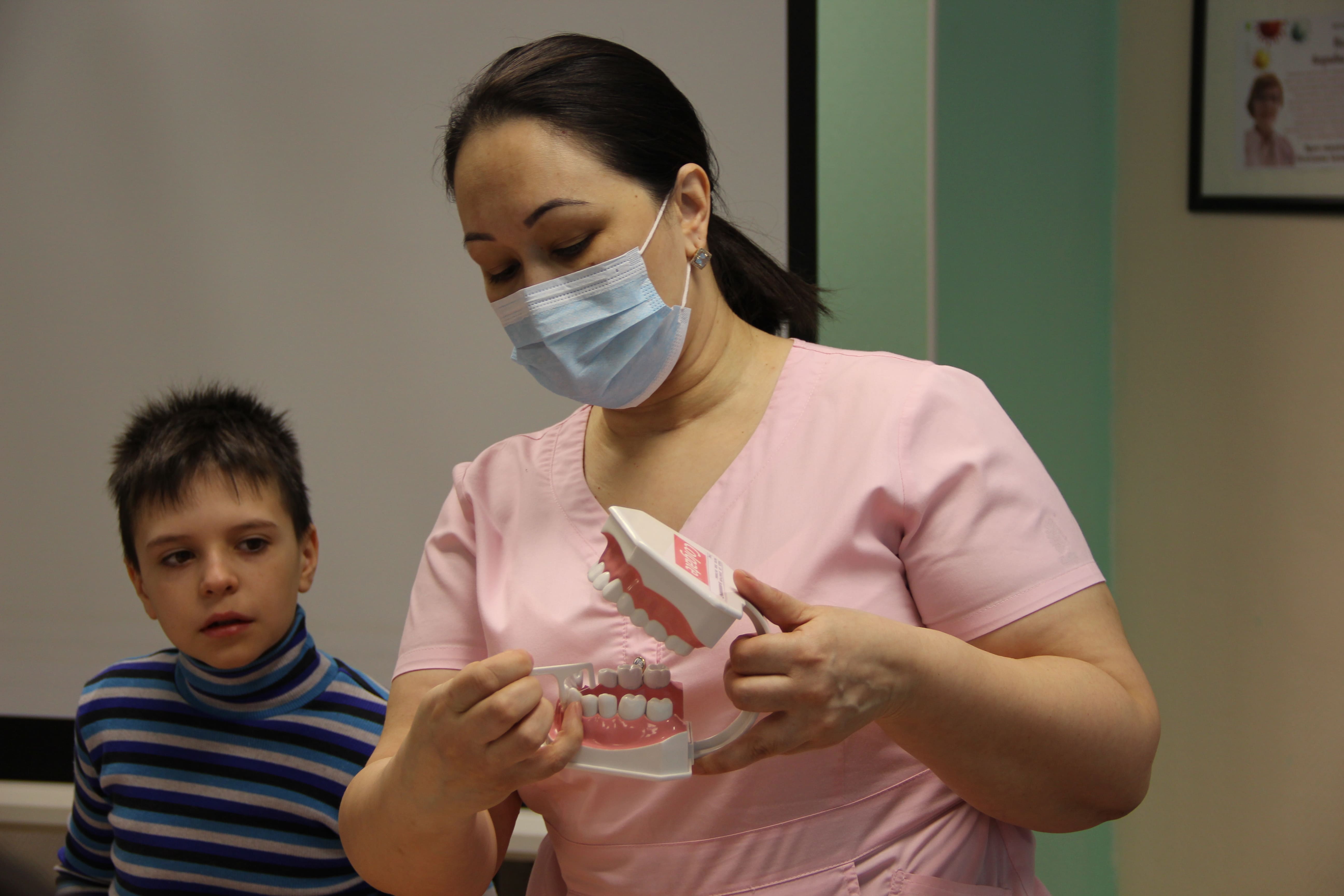 Гигиенист-стоматологический Гульнара Огнева провела с учениками школы №21, проходящих комплексное обследование, познавательную лекцию по профилактике основных стоматологических заболеваний.