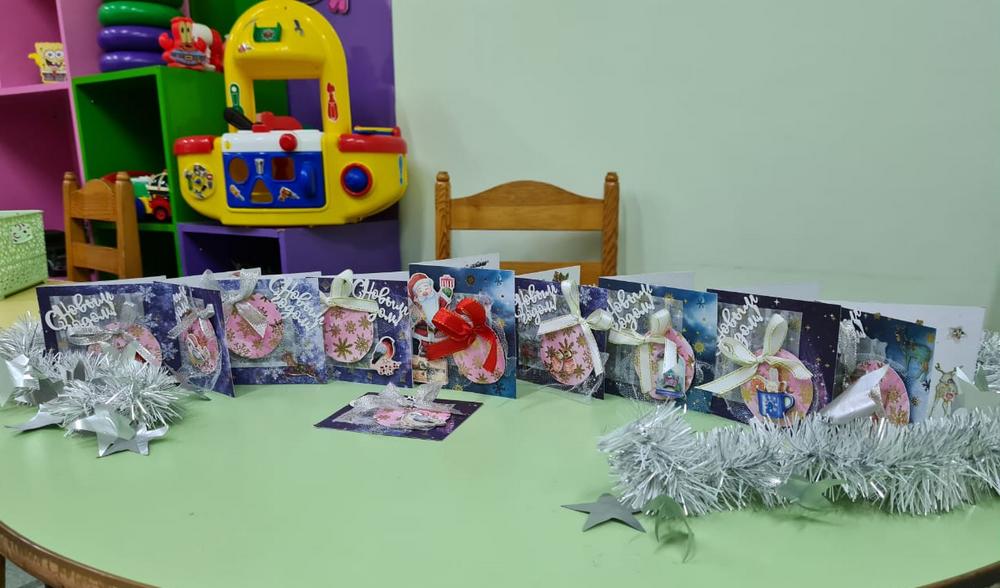 Кроме того, волонтеры-медики Гимназии №1 провели мастер-класс по созданию новогодней открытки. Ребята сами сделали открытки для своих родных и близких.