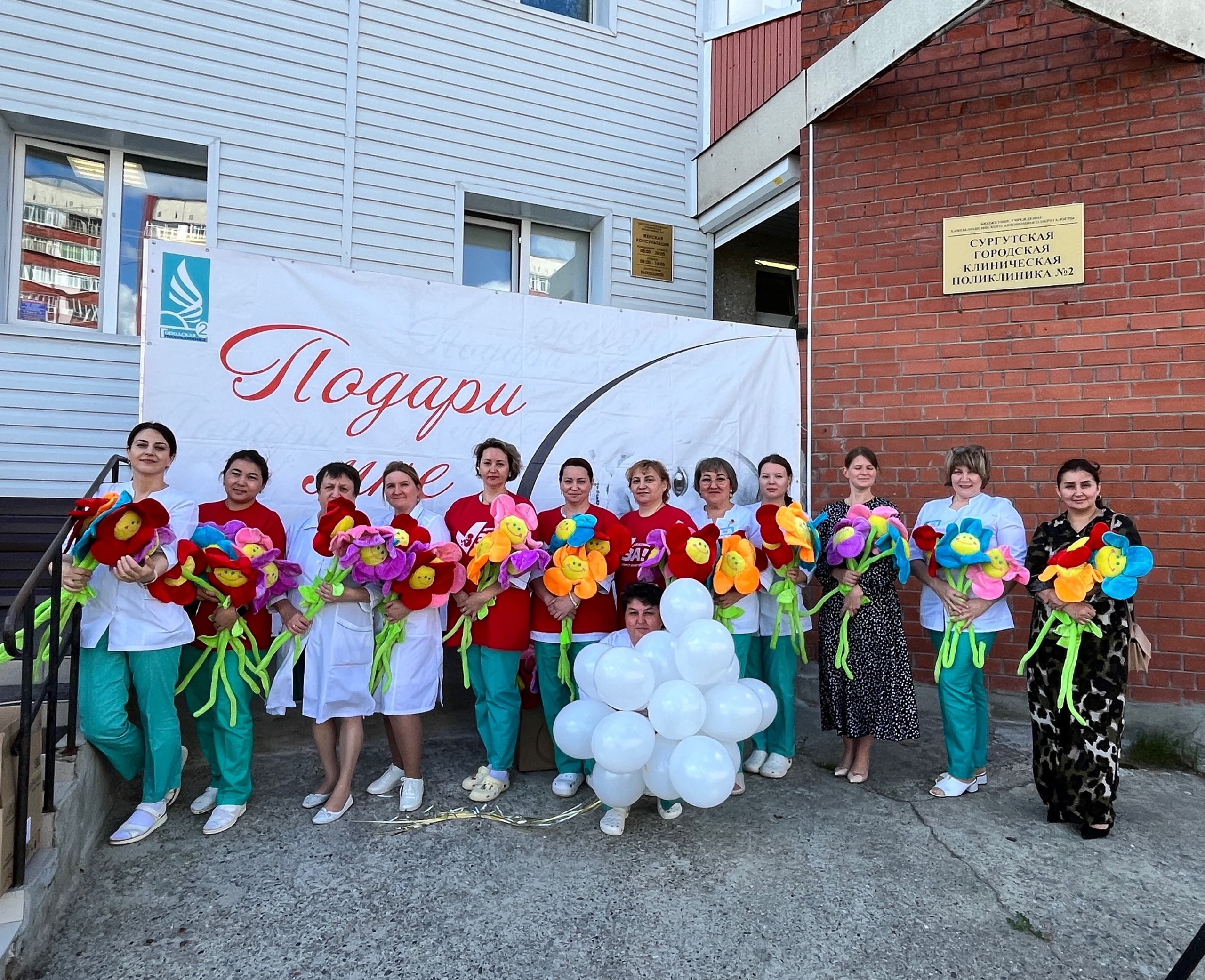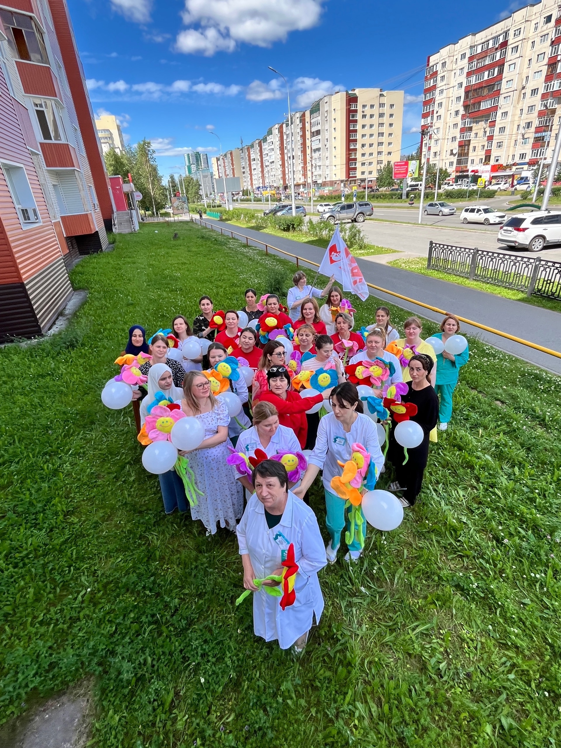 Флешмоб в честь День семьи любви и верности организовали сотрудники и пациентки женской консультации Сургутской городской клинической поликлиники № 2. Они образовали фигуру сердца, олицетворяющую внимание, любовь и прочность семейных связей.