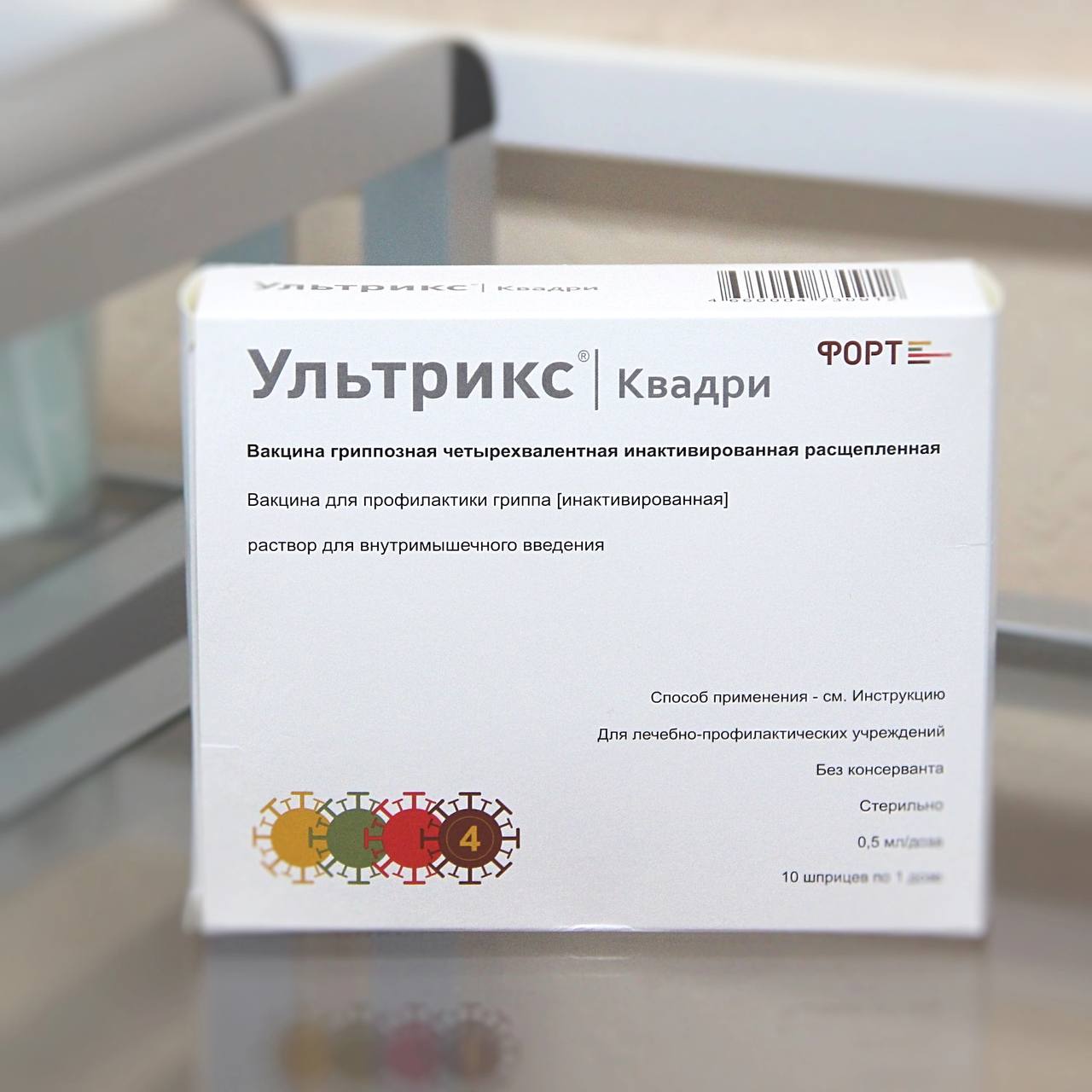 В поликлинику поступила партия иммунобиологического препарата против гриппа «Ультрикс Квадри» в количестве 23890 доз. Вакцина является четырехвалентной, инактивированной и расщепленной. Она не содержит консервантов. Выпускается в предварительно наполненном шприце одноразового применения со специальной атравматичной иглой для безболезненного введения. Разрешена к применению у детей с 6 месяцев, а также у подростков и взрослых без возрастных ограничений.