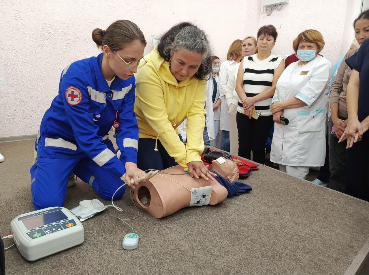 Обучение включало в себя практическое освоение автоматического наружного дефибриллятора (АНД). Медицинский специалист подробно объяснил участникам принцип действия и правила безопасной эксплуатации этого прибора.