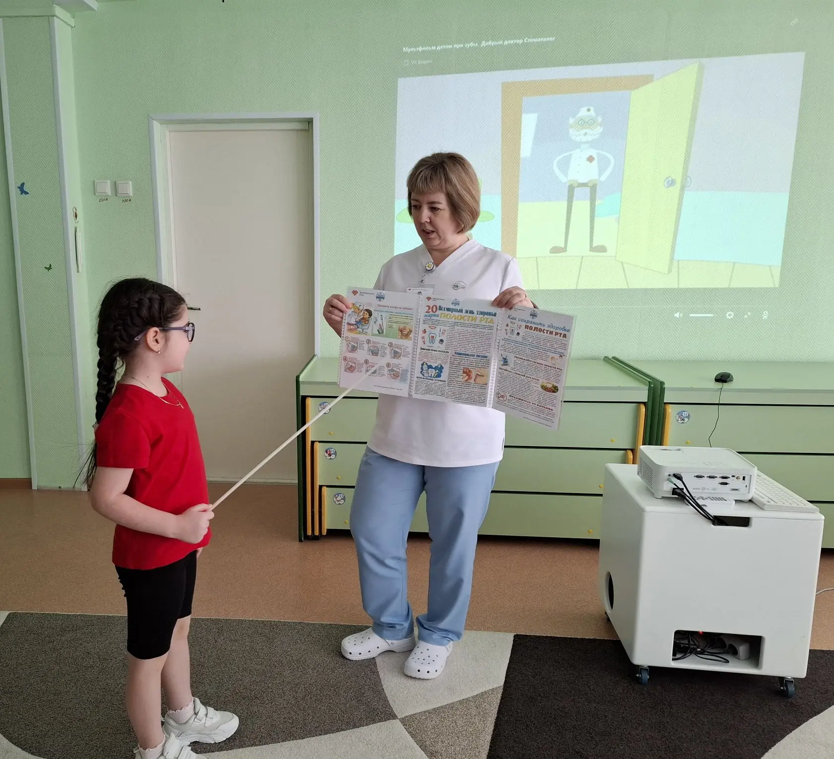 Программа занятия сочетала в себе элементы игрового обучения и практической подготовки. Встреча началась с просмотра мультфильма «Добрый доктор-стоматолог», который в доступной форме объяснил ребятам необходимость регулярной заботы о зубах. Далее Мария Николаевна перешла к практической части: она наглядно продемонстрировала правильную технику чистки зубов и подробно рассказала о ежедневных правилах гигиены. Завершающим этапом стало формирование здоровых привычек через обсуждение прямой связи между состоянием полости рта и общим самочувствием всего организма.