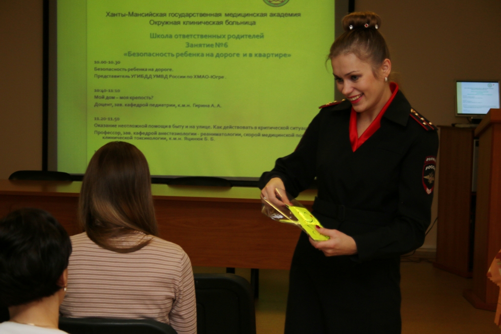 Стоит так же отметить, что темы занятий выбраны не случайно, а на основе предварительного анкетирования, проведенного среди родителей в детской поликлинике ОКБ. Прошедшее занятие было посвящено, так называемому, бытовому травматизму, а так же безопасности детей при поездках в транспорте, правилам безопасного поведения на дороге. Кроме того, родителем рассказали, как действовать в критической ситуации до приезда врачей. Перед родителями выступили представители управления ГИБДД, главный внештатный педиатр Департамента здравоохранения Югры Асия Гирина и главный внештатный анестизиолог-реаниматолог Департамента здравоохранения Югры Борис Яцинюк.