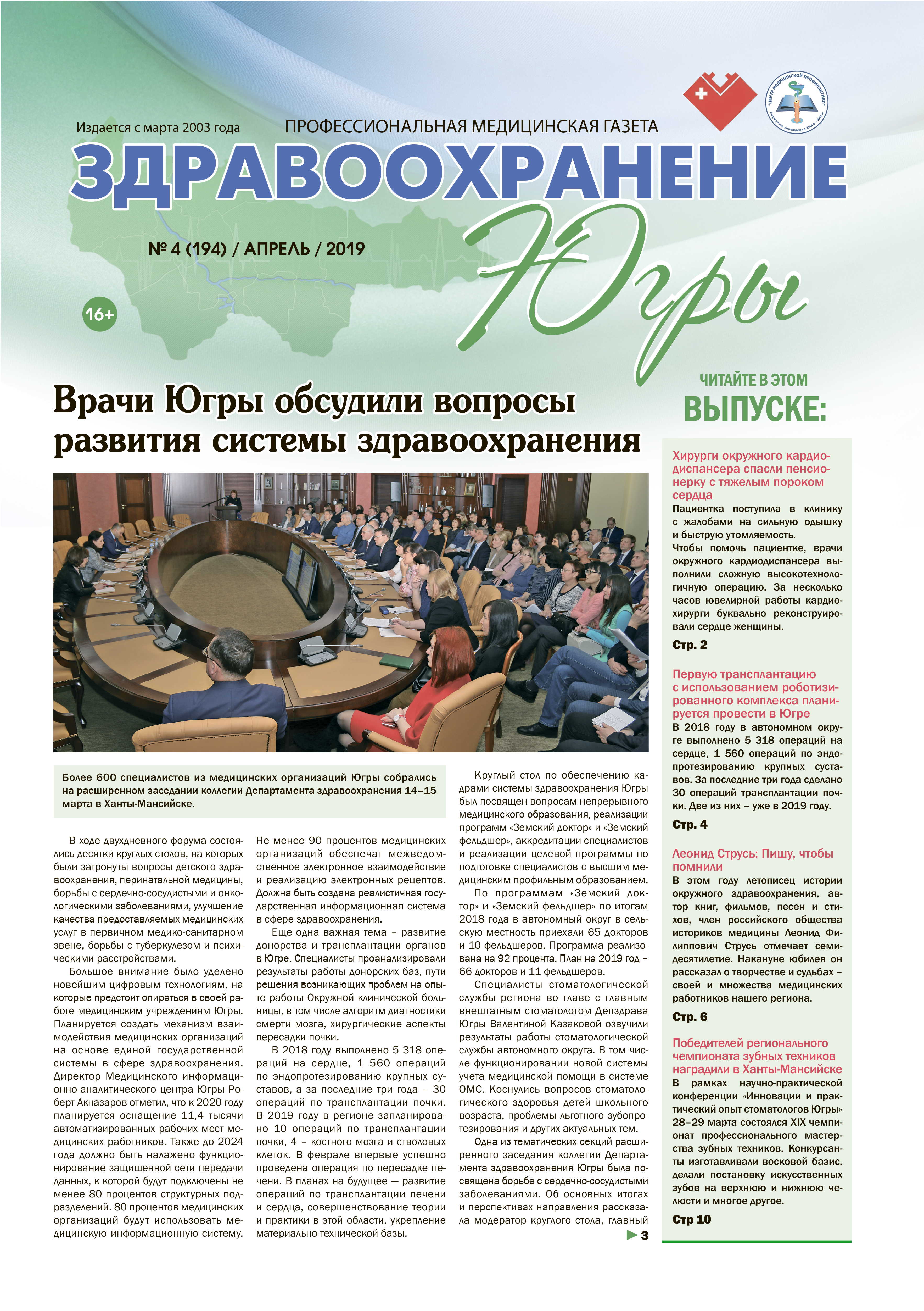 Газета "Здравоохранение Югры" № 4 (194) 2019
