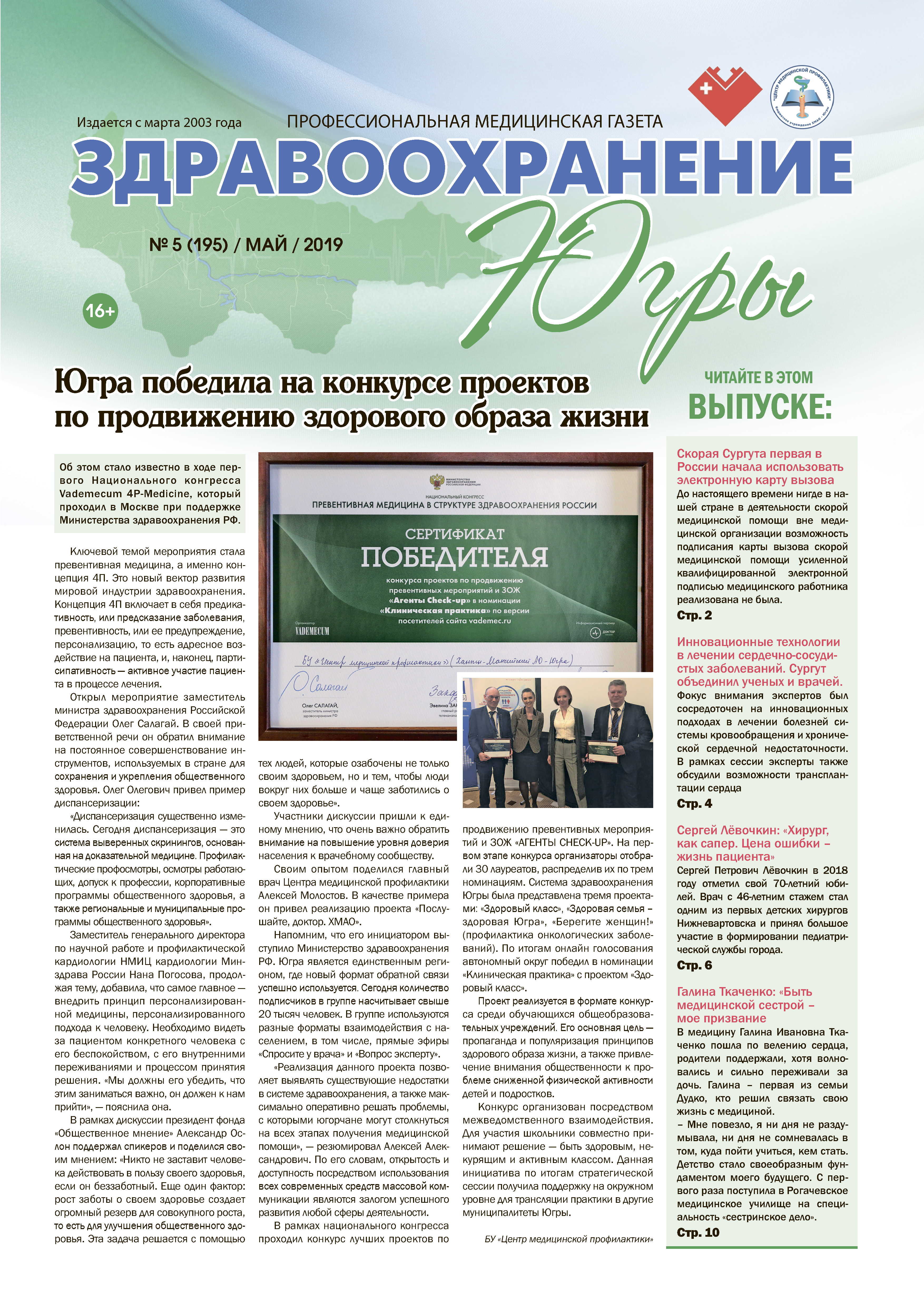 Газета "Здравоохранение Югры" № 5 (195) 2019