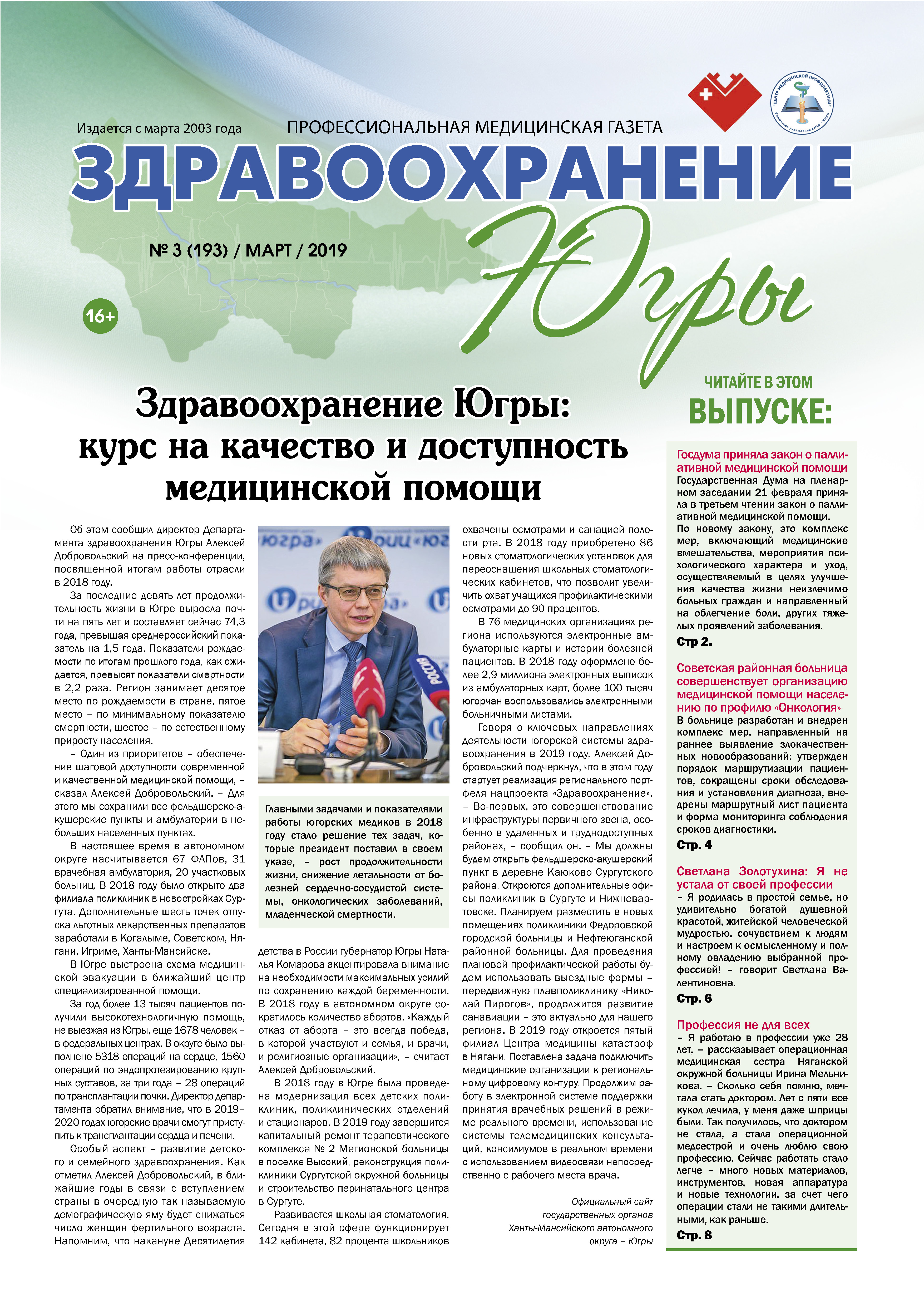 Газета "Здравоохранение Югры" № 3 (193) 2019