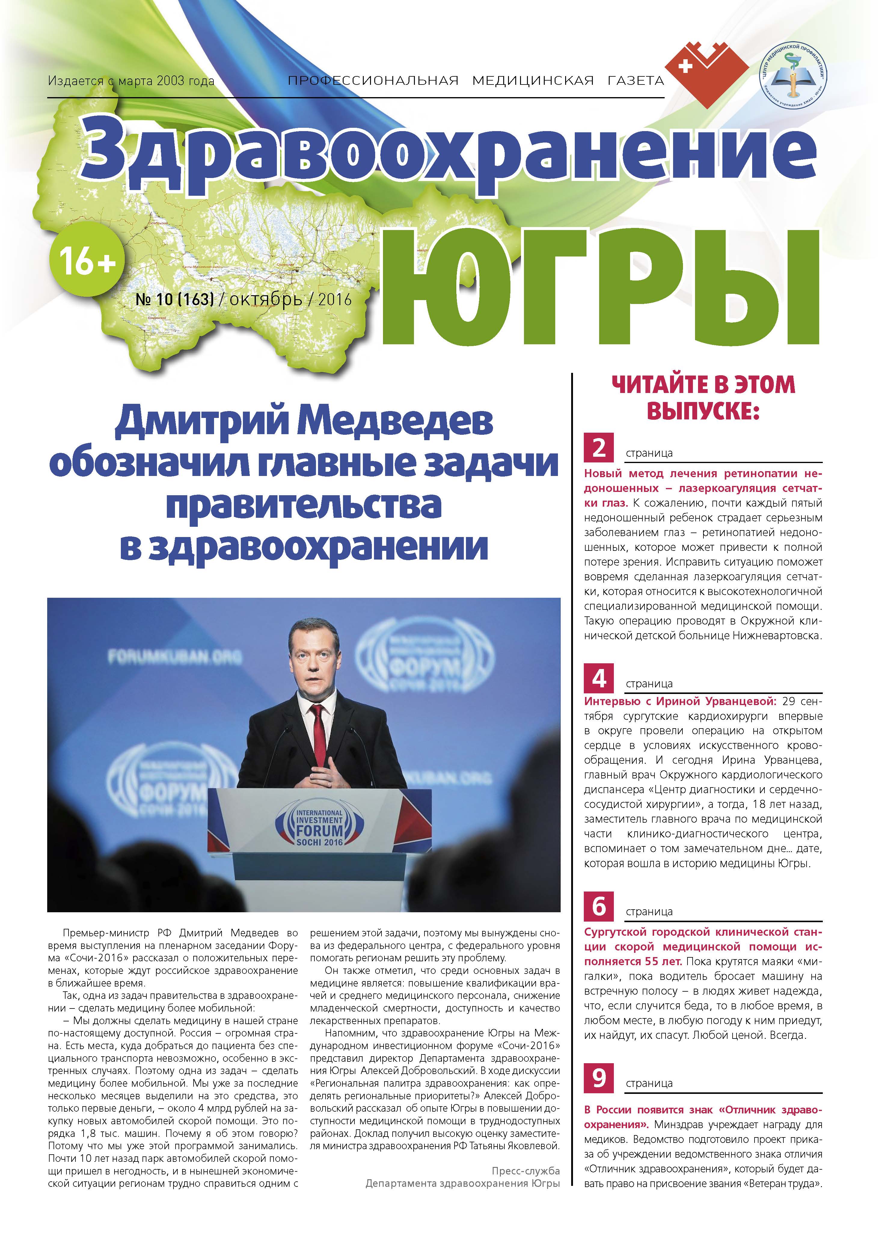 Газета "Здравоохранение Югры" № 10 (163) 2016