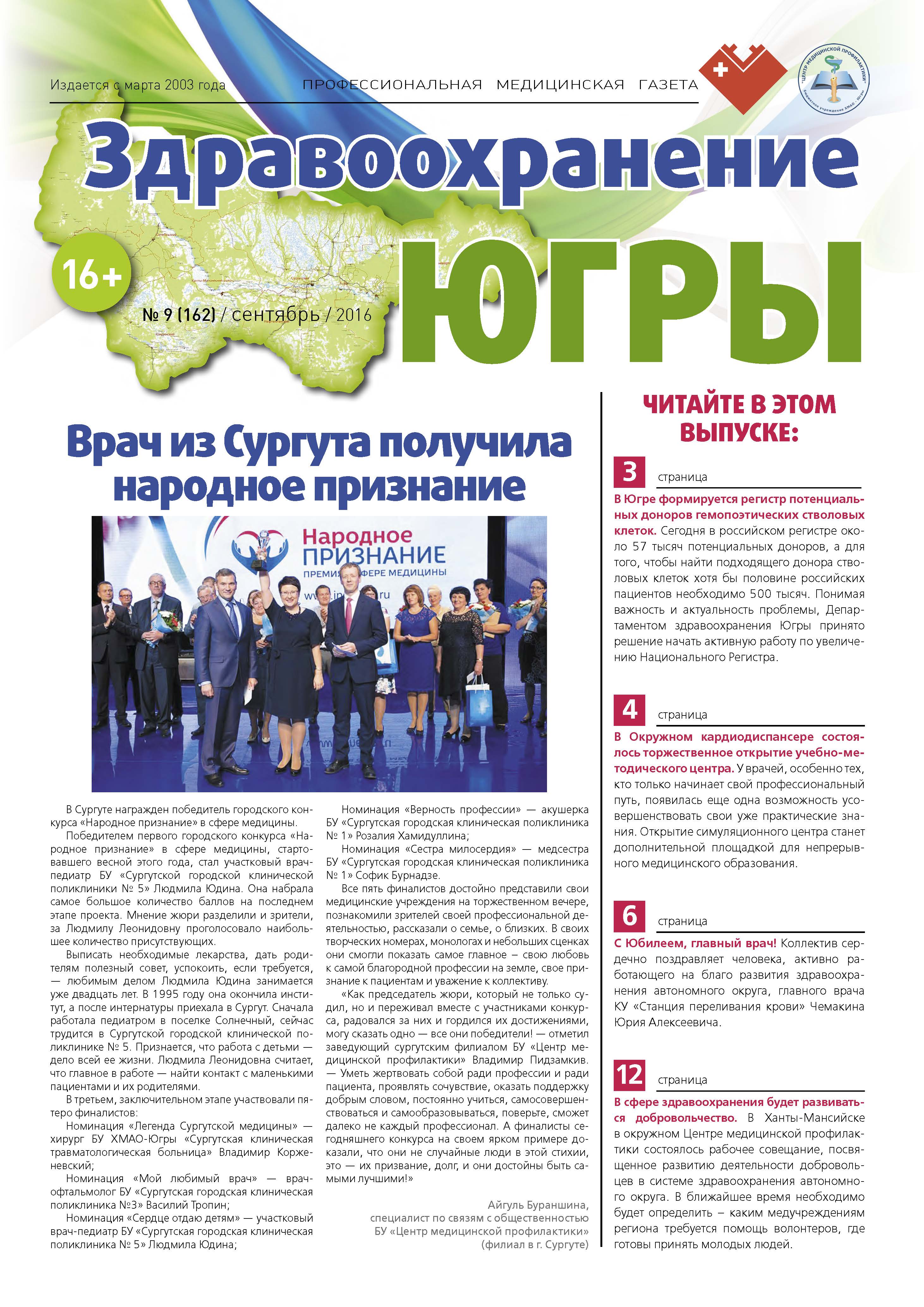 Газета "Здравоохранение Югры" № 9 (162) 2016